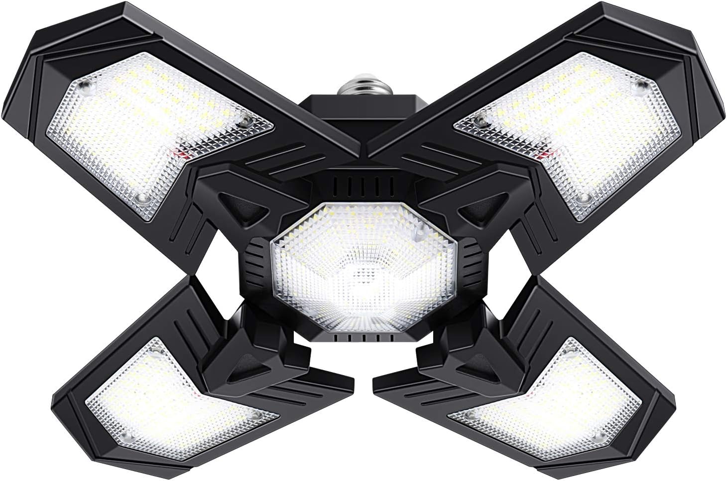 50% Off Discount LED Garage Lights ,12000LM Garage Lighting 120W Deformable Garage Ceiling Light with 4 Adjustable Panel, LED Shop Light with E26 Lamp Socket, Ceiling Lighting Fixture for Basement, Warehouse