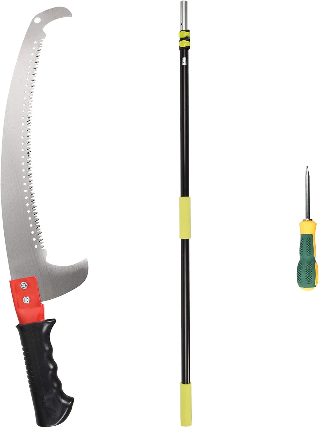- Telescopic Pole : This lightweight telescoping pole features 58.5 inch,the saw features 22.8 inch,it's a ideal for trimming and pruning branches and leaves.
