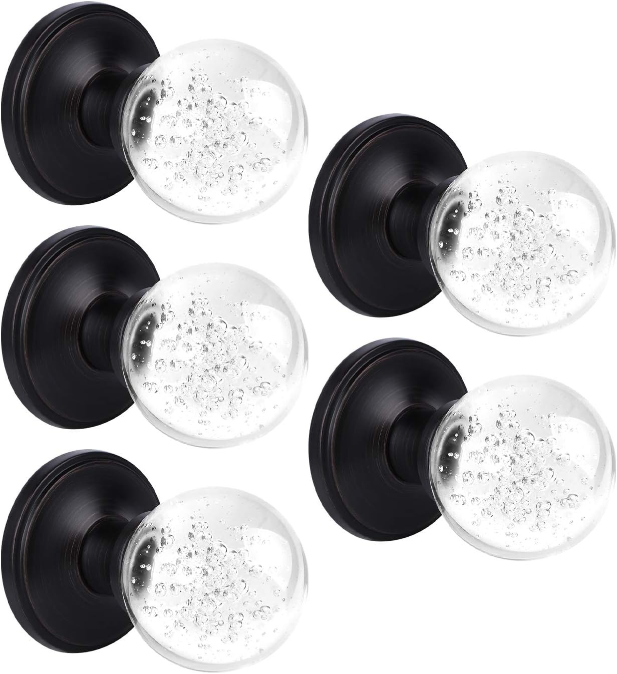 KNOBWELL 5 Pack Interior Bubble Glass Dummy Door Knob Single Sided Crystal Door Knob Closet Door Knobs Antique Oil Rubbed Bronze